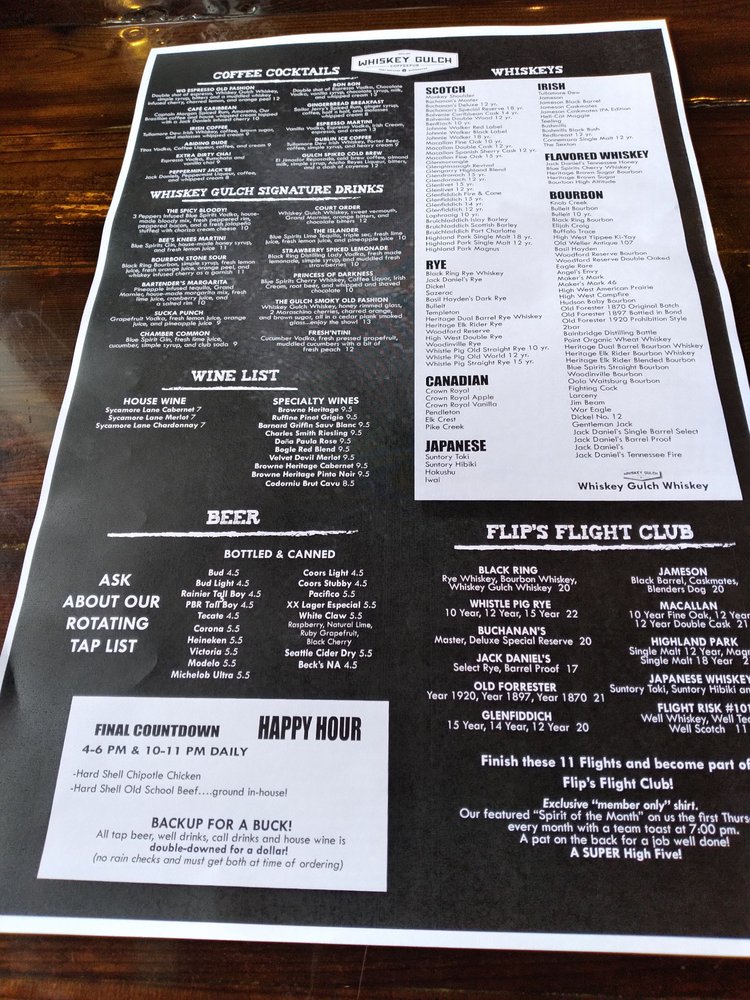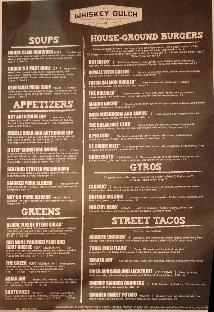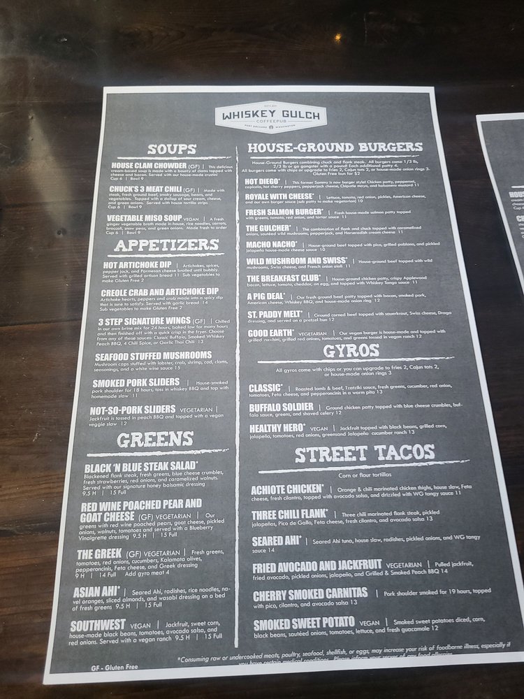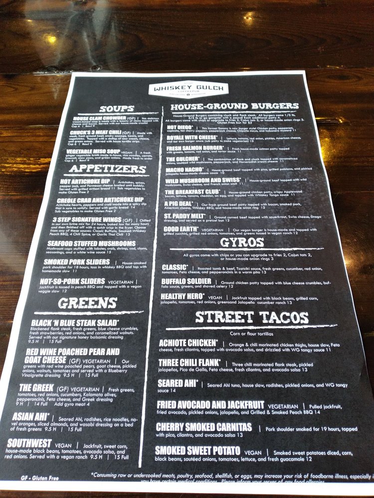 Whiskey Gulch CoffeePub Menu (2025 Update)